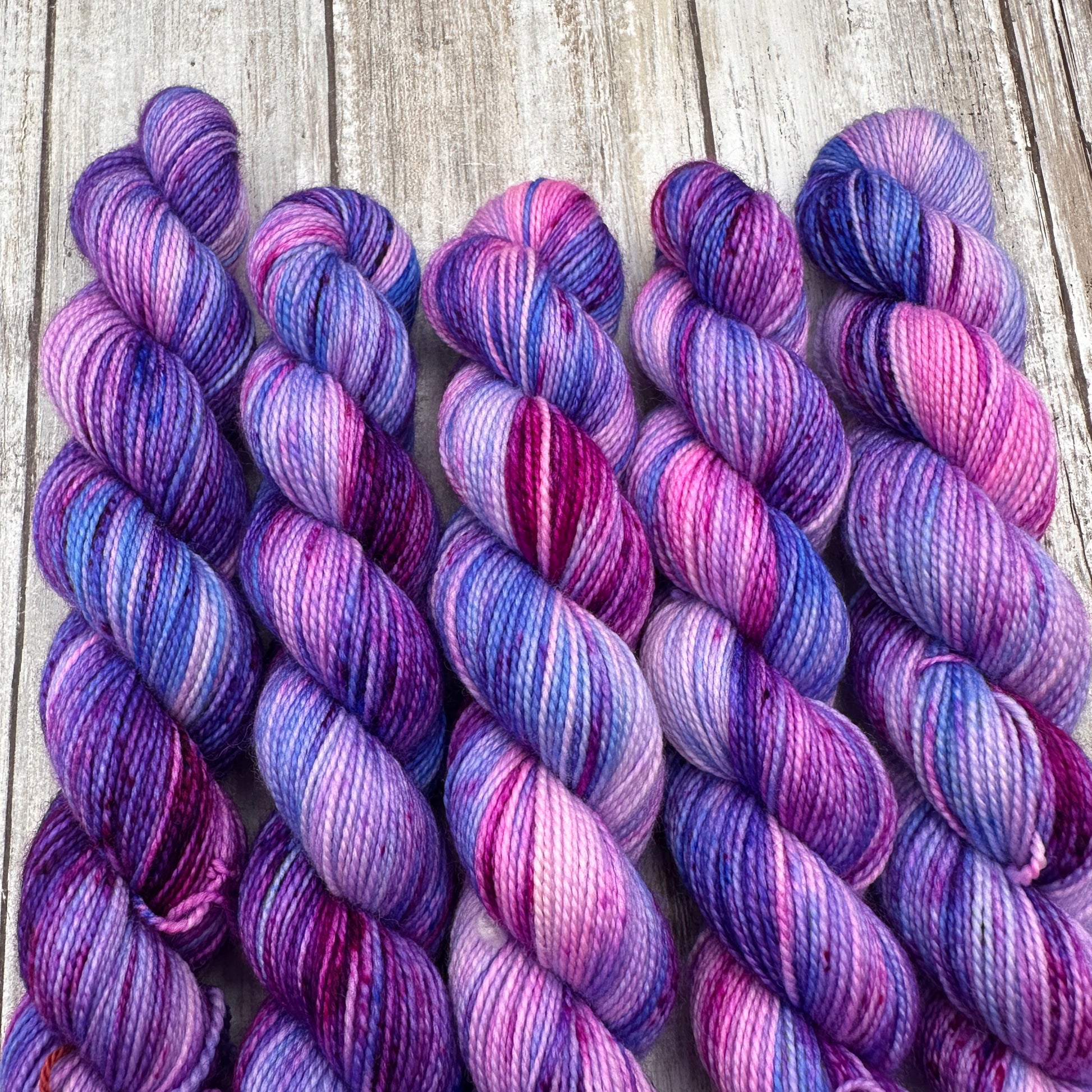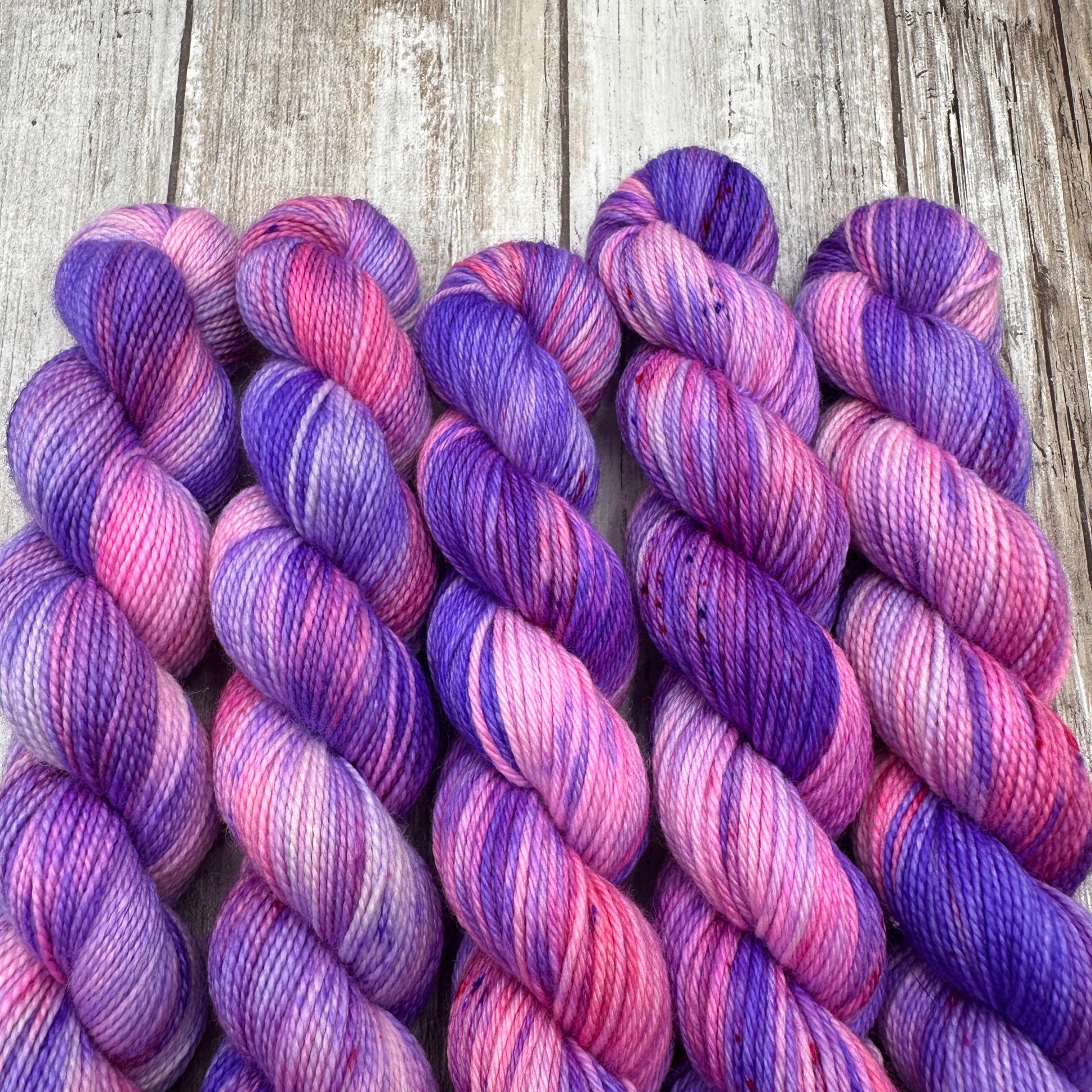 Hand dyed in a smoke free, pet friendly home. Due to being hand dyed in small batches, tones and/or speckling may vary slightly from skein to skein. The skein you receive may not be identical to the listing photo, but it will still match the color way.