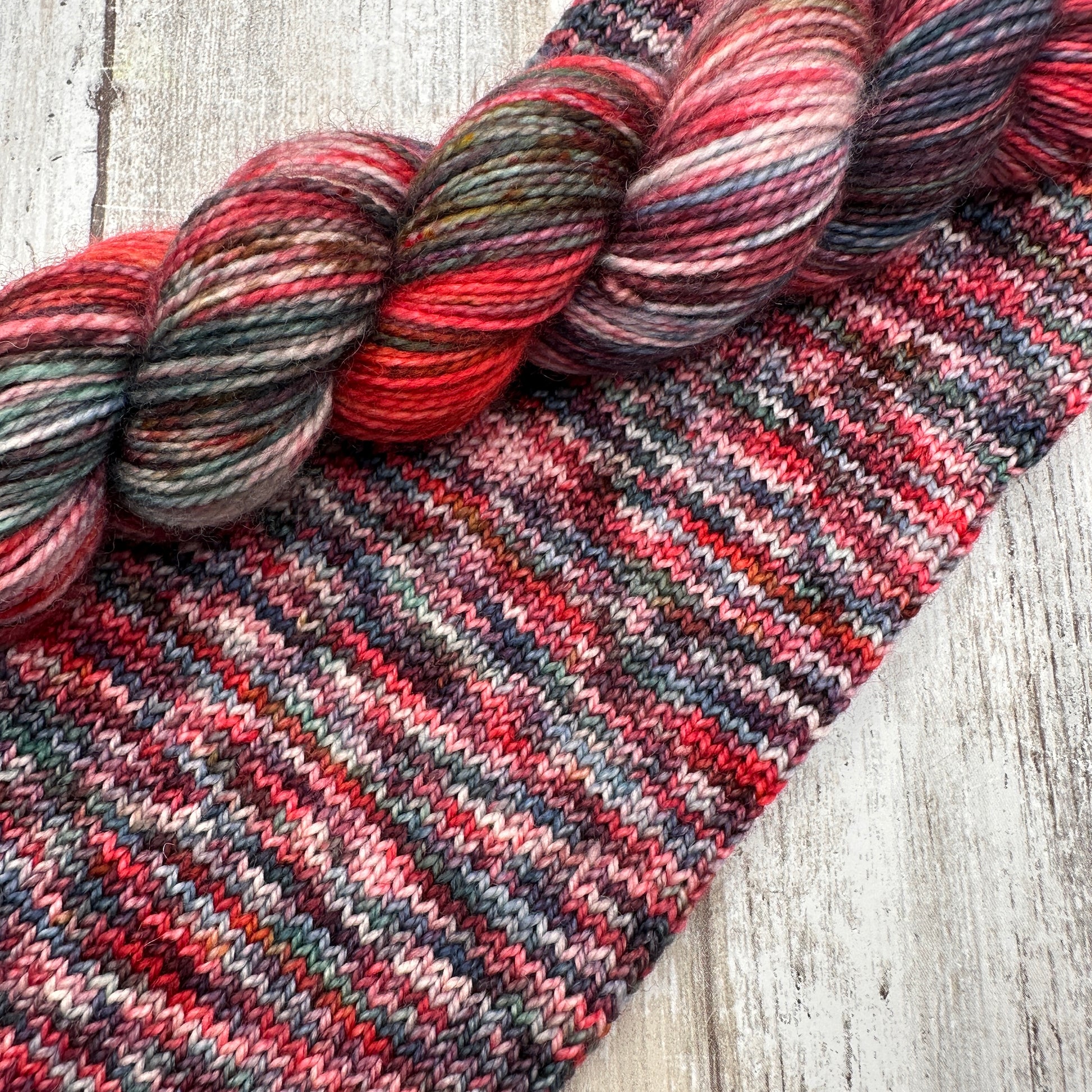 Hand dyed in a smoke free, pet friendly home. Due to being hand dyed in small batches, tones and/or speckling may vary slightly from skein to skein. The skein you receive may not be identical to the listing photo, but it will still match the color way.