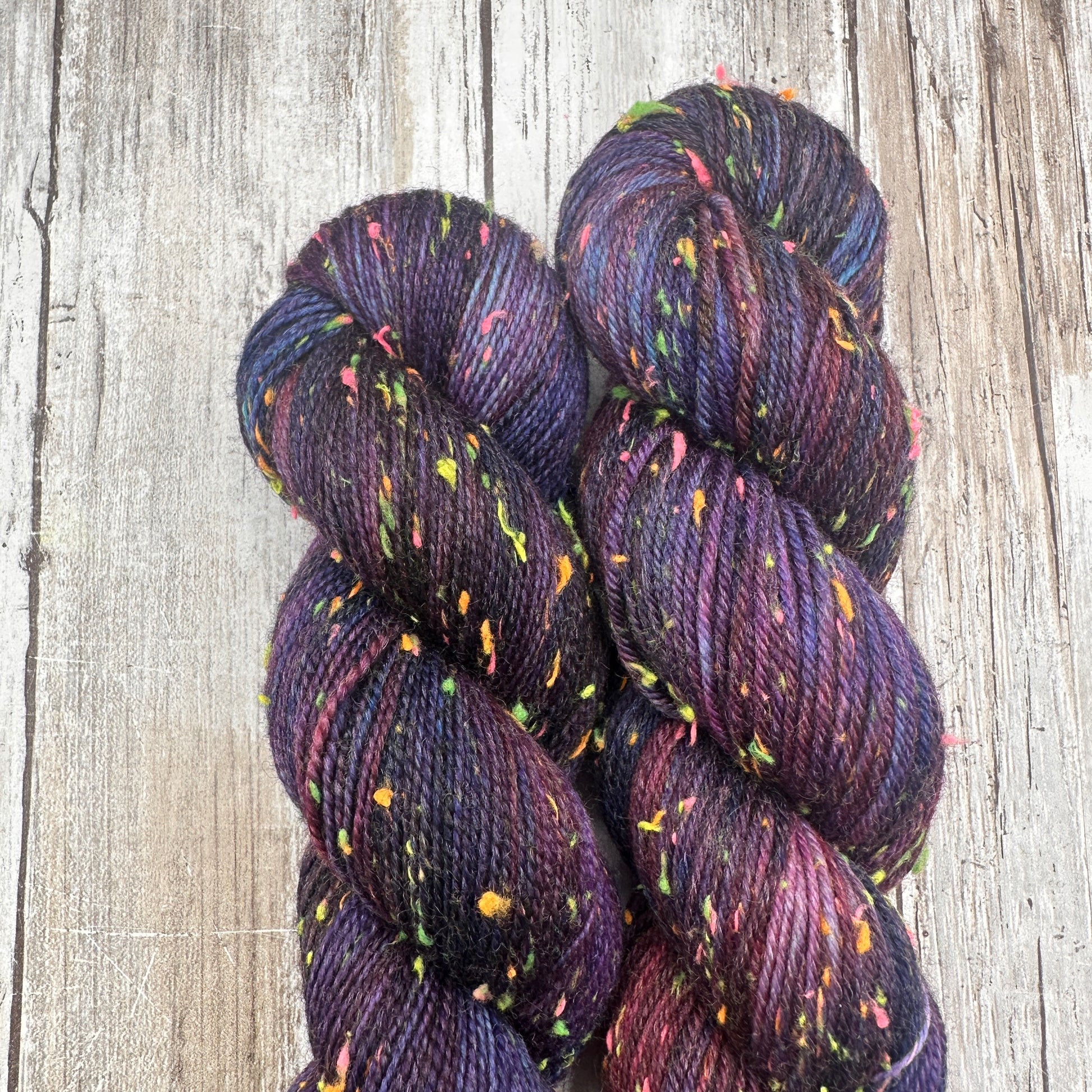 Hand dyed in a smoke free, pet friendly home. Due to being hand dyed in small batches, tones and/or speckling may vary slightly from skein to skein. The skein you receive may not be identical to the listing photo, but it will still match the color way.