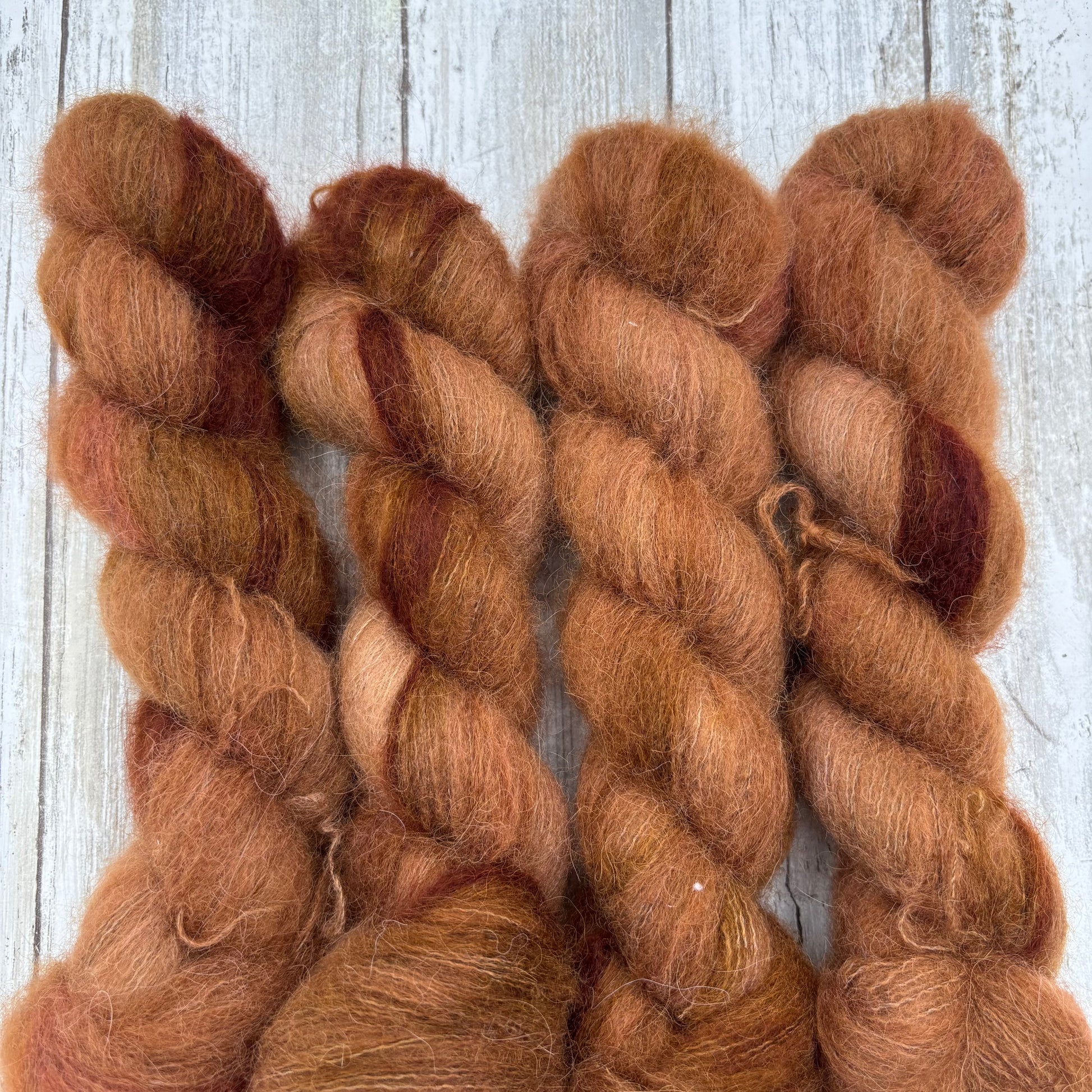 Hand dyed in a smoke free, pet friendly home. Due to being hand dyed in small batches, tones and/or speckling may vary slightly from skein to skein. The skein you receive may not be identical to the listing photo, but it will still match the color way.