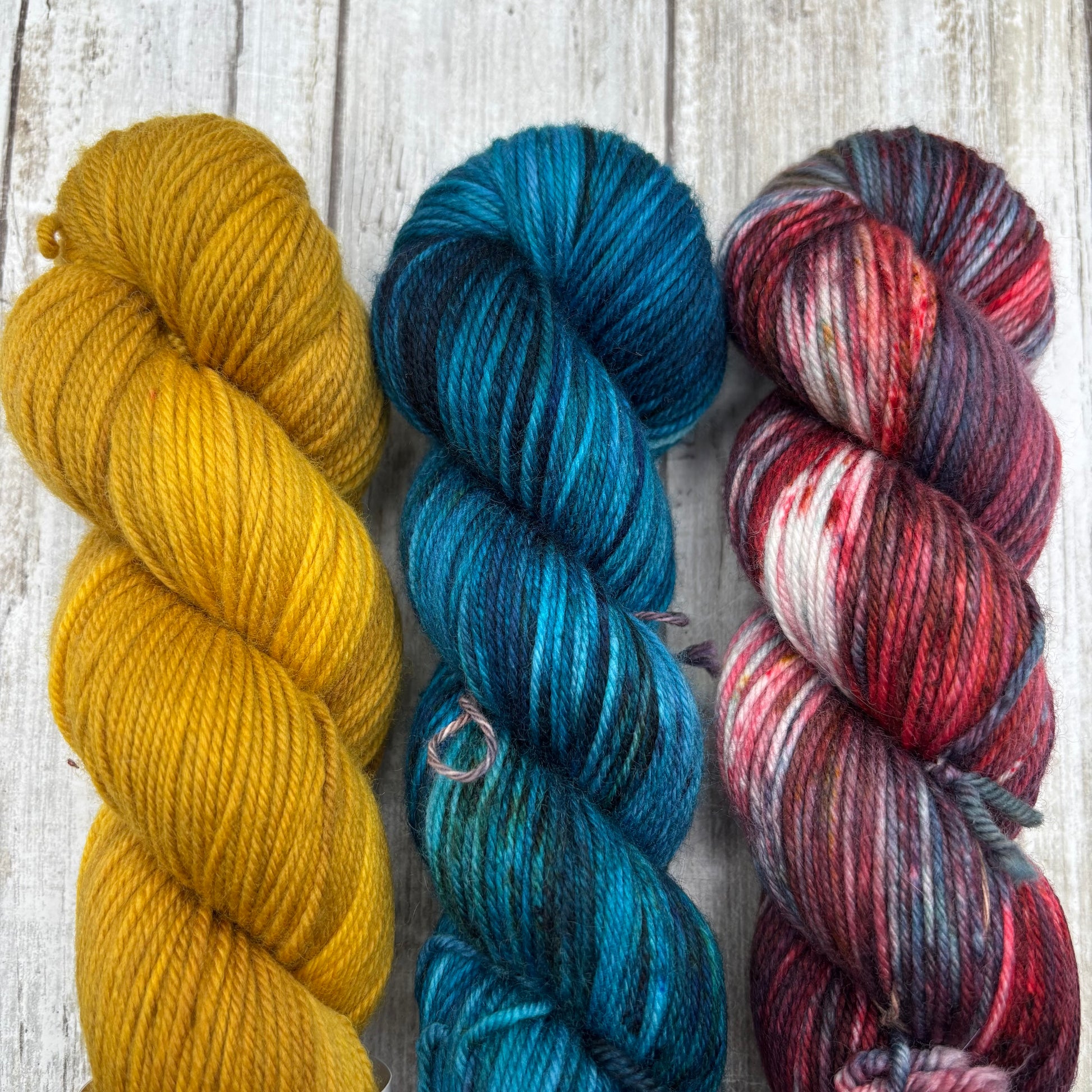 Hand dyed in a smoke free, pet friendly home. Due to being hand dyed in small batches, tones and/or speckling may vary slightly from skein to skein. The skein you receive may not be identical to the listing photo, but it will still match the color way.