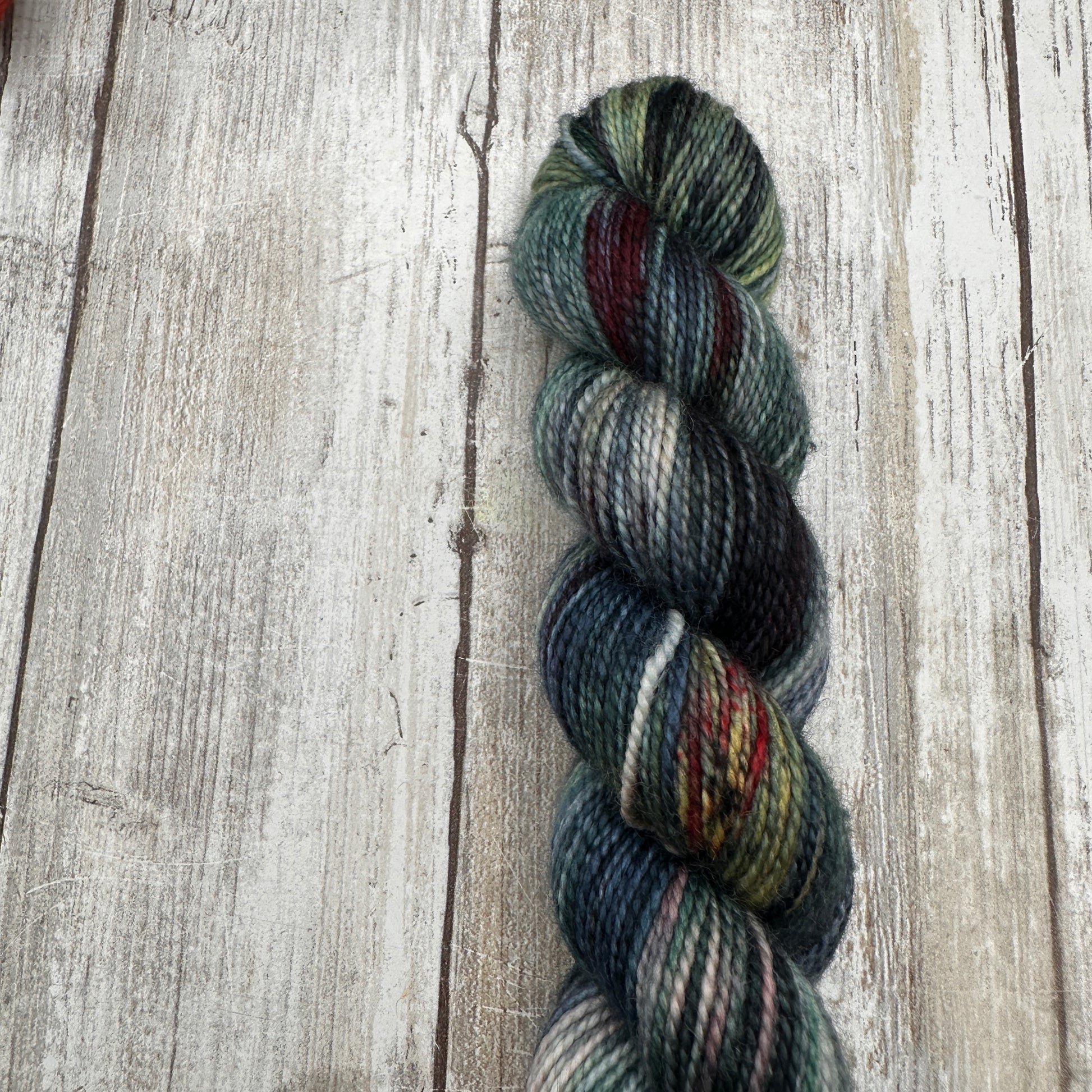 Hand dyed in a smoke free, pet friendly home. Due to being hand dyed in small batches, tones and/or speckling may vary slightly from skein to skein. The skein you receive may not be identical to the listing photo, but it will still match the color way.